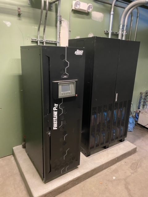 Lighting inverter installed to protect emergency lighting in apartment complex.